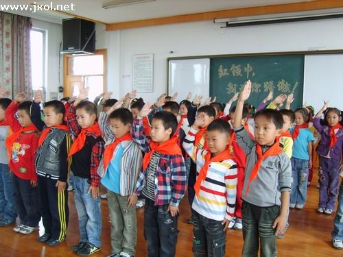 十月十三日,焦溪小学少先队大队部组织全体一年级新生举行入队仪式。12:30,小朋友们满怀激动的心情来到阶梯教室,他们安安静静地坐着,那一双双充满着期待的眼睛,一张张可爱的笑脸,流露出对加入中国少先队的渴望。在铿锵有力地鼓号声中活动开始了,首先由大队辅导员顾老师给新生代表佩戴鲜艳的红领巾,接着辅导员向大家宣读了本次加入少先队的队员名单,然后由高年级的大哥哥大姐姐给他们佩戴红领巾,并教他们行队礼。看,孩子们带上鲜艳的红领巾多么神气、多么自豪、多么开心呀!少先队员们在庄严的队旗下郑重地宣誓决心做一名优秀的少先队员。本次活动在稚嫩而坚定的呼号声中画上了圆满的句点。