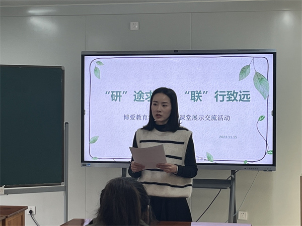 为进一步加强校际之间的语文教学交流,聚力课堂建设,打造优质课堂,促进教师的专业成长,不断提高课堂教学质量,2023年11月15日,博爱教育集团联盟校“‘研’途求新 ‘联’行致远”课堂展示交流活动在焦溪小学多媒体教室顺利举行。焦溪小学全体语文老师及联盟校教师代表参加了此次活动。