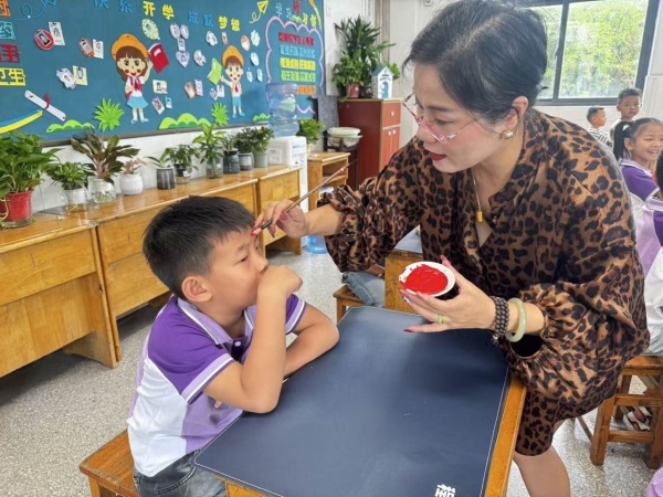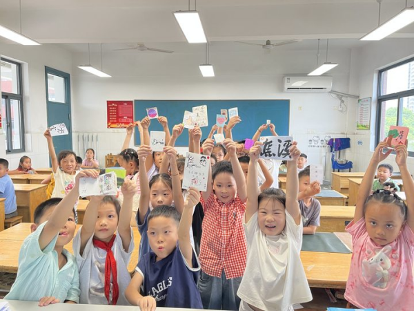 课程伊始,同学们在温馨愉悦的氛围中开启假期回顾之旅。为迎接新生,一年级正副班主任默契配合,举行了温情满满的入学仪式,满含期许的仪式感让孩子们对校园生活心生向往;中高年级学生则以图文并茂的形式,展示在古镇探寻到的“儿童友好”角落照片,分享走访家中非遗制品时挖掘的文化故事,一幅幅生动绘画更传递出他们对传统的全新解读。心理调适环节中,同学们在轻松互动中梳理假期小情绪,抚平心情褶皱,一份积极阳光的开学心态在默契交流中慢慢滋长。