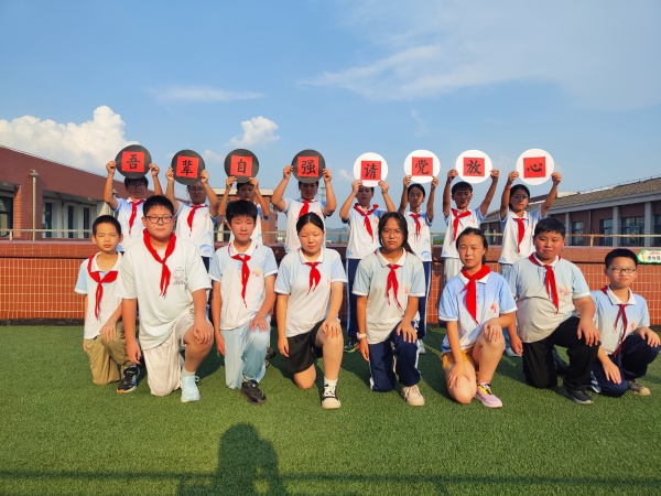 随后,程梓妍队员向全体少先队员发出倡议,号召大家以勤奋学习增长才干、以遵守纪律团结同学、以强健体魄锤炼意志、以爱护红领巾等小事践行爱国,用实际行动诠释“吾辈当自强”。