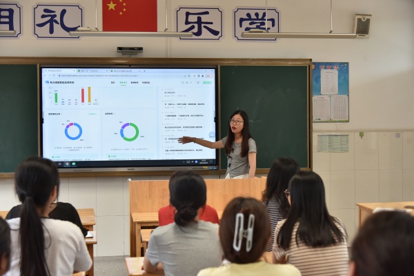 张老师提到,该系统不仅能帮助教师发现教学中的薄弱环节,还能根据学科内容和学生情况,自动生成教案框架和课件素材。教师只需结合班级实际稍作调整,就能高效完成备课,大大节省时间。此外,系统支持对课堂视频进行横向和纵向分析:横向可对比同年级、同学科教师的教学方式,汲取优秀经验;纵向可回顾教师本人不同阶段的教学录像,精准发现教学语言、时间安排等方面的提升空间,助力教师持续成长。